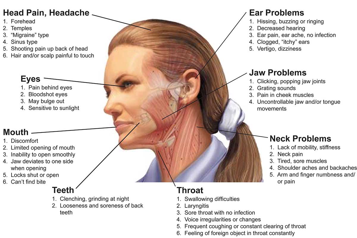 • Patients with Migraines, Headaches, Tension Headaches, Concussions, and MVA can likewise have TMJ Disorders